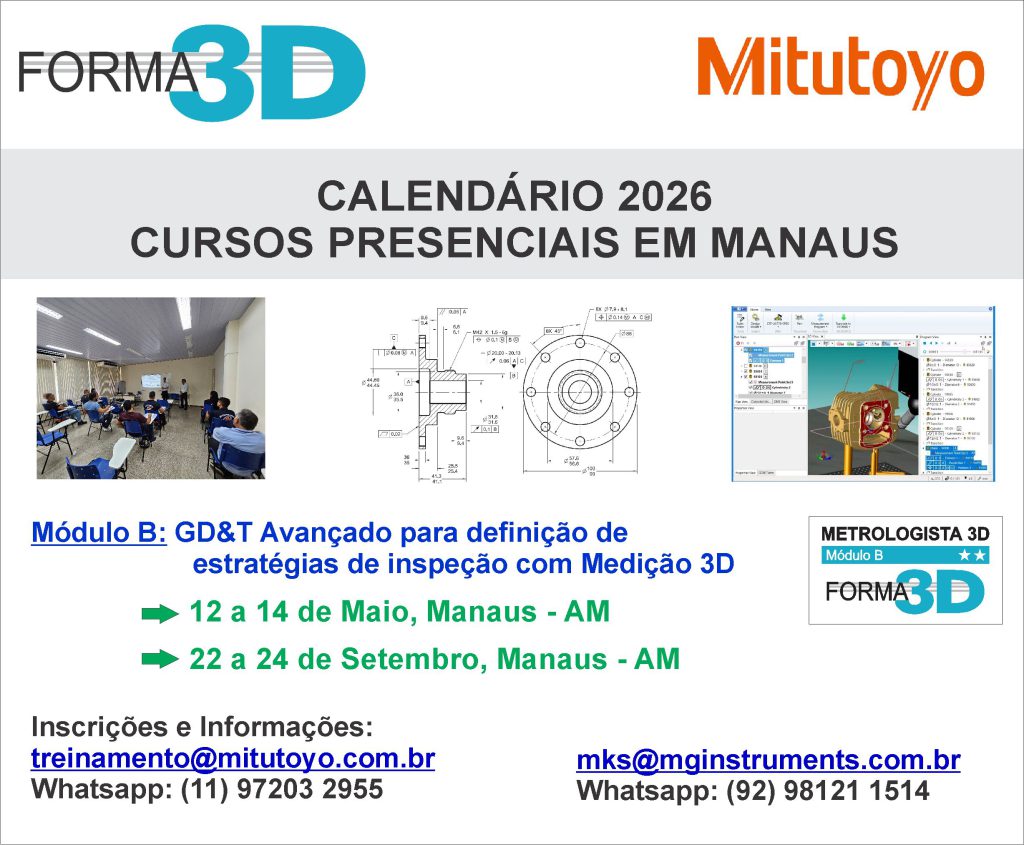 O Módulo B do FORMA3D é realizado também em Manaus com apoio do moderno showroom da Mitutoyo no Polo Industrial, segundo o calendário abaixo.