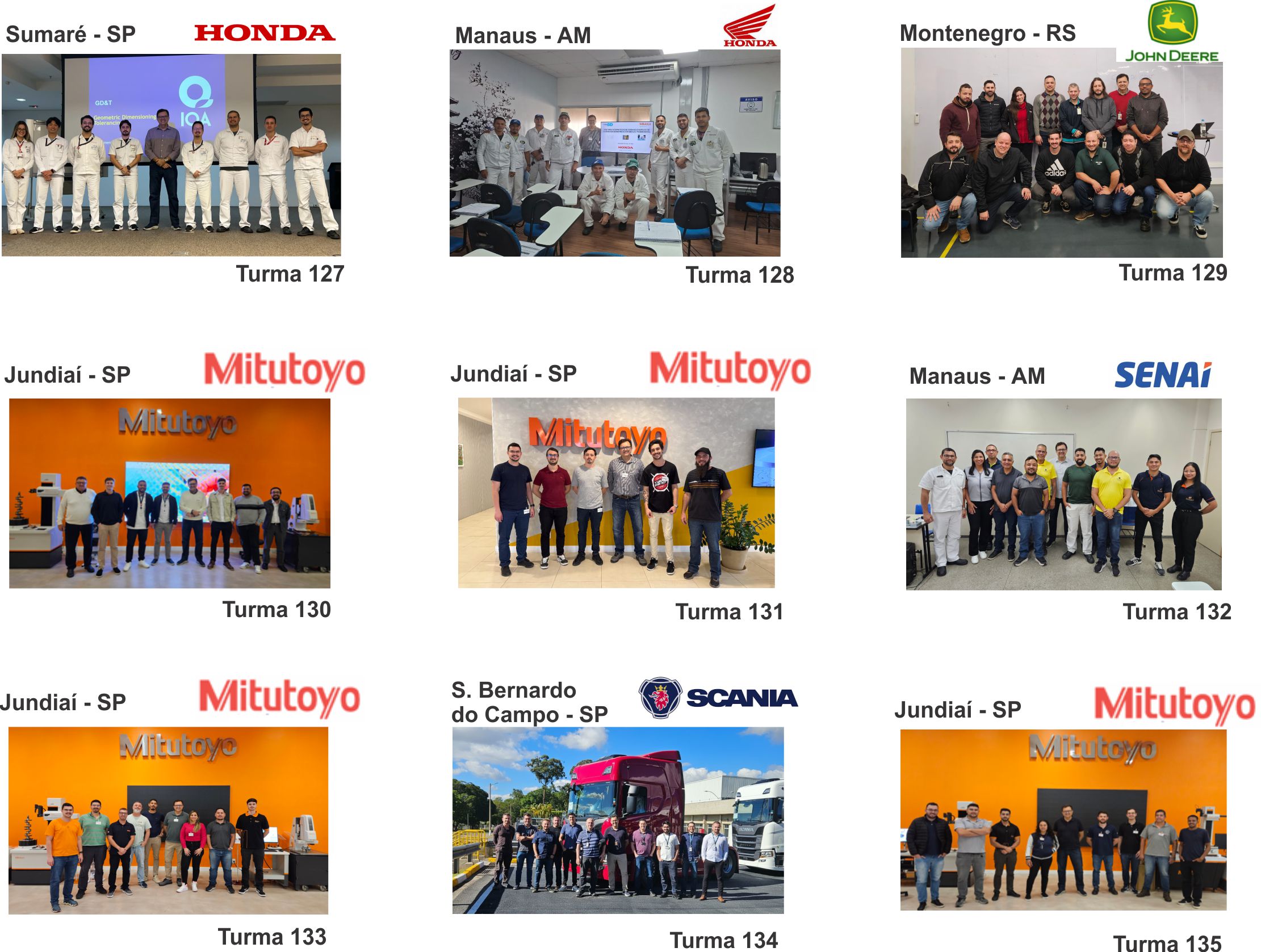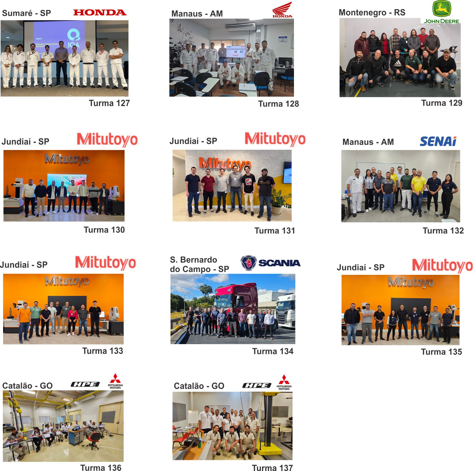 A seguir podem ser vistas as turmas presenciais do FORMA3D, em ordem cronológica.